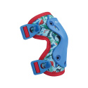 Dětské chrániče kolen a loktů v modro-červené kombinaci s motivem dinosaurů. Barevný motiv je neutrální, takže by se měl chránič líbit jak klukům tak i holčičkám, ale motiv dinosaurů pravděpodobně zaujme spíše kluky. Chrániče pomáhají zabránit zbytečným nárazům a odřeninám. Pro přesné nastavení velikosti jsou chrániče vybaveny popruhy se suchým zipem. Tyto nastavitelné pásky spolu s textilní prodyšnou elastickou membránou zajistí, že chránič bude dobře držet. Vylepšený systém zaklapnutí (Easy Click-In System) umožňuje rychlejší nasazení chrániče bez nutnosti nového nastavení suchého zipu. Vnější prémiový tvrzený plast je navržen tak, aby byl houževnatý a trvanlivý. Je také anatomicky tvarován pro příjemné používání. Komfort při používání, ale i při pádu zaručuje vnitřní silné polstrování.
