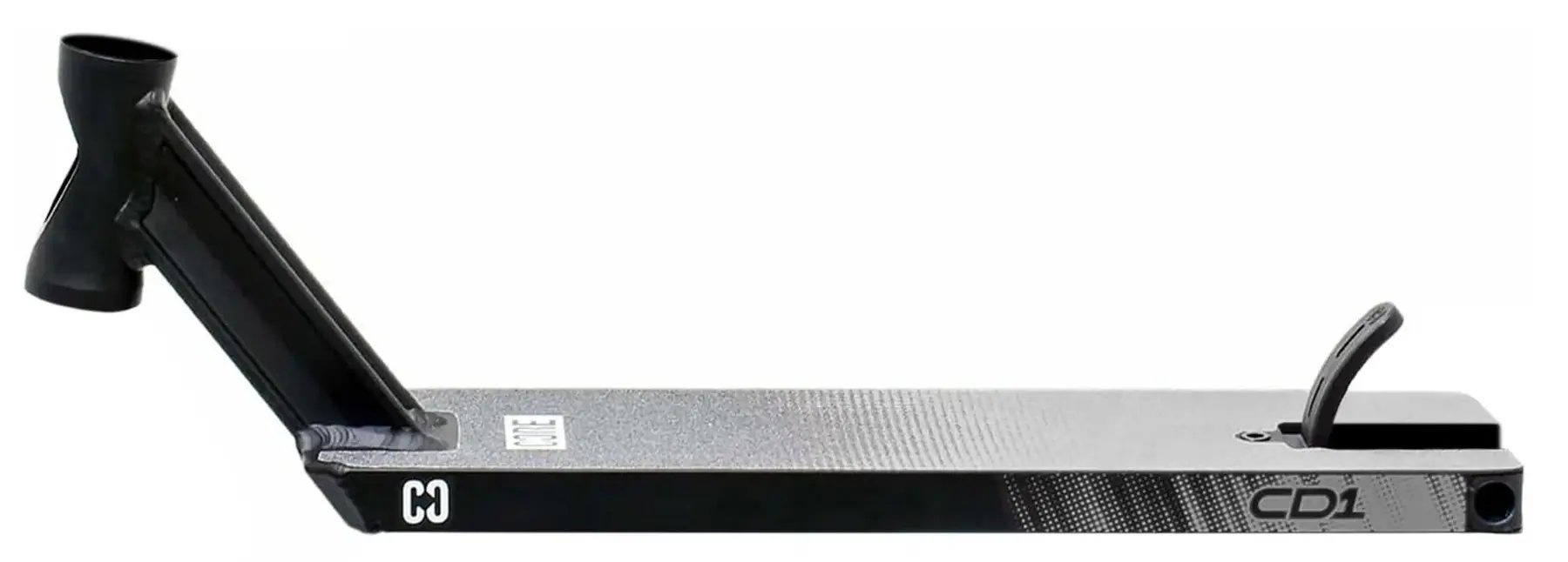 Paluba CD1 Pro Scooter Deck má také jedinečný výřez v hlavové trubce, který snižuje hmotnost, a je tak jednou z nejlehčích palub na trhu. Paluba CD1 je vybavena řadou prvků, které z ní dělají skvělou volbu pro každého jezdce, včetně šířky 4,5" x délky 18,5", boxovaných konců s nylonovými zátkami pojistných matic, úhlu hlavové trubky 83 stupňů a hmotnosti pouhých 1,38 kg. Jeho součástí je také kvalitní nylonová brzda pro spolehlivé zastavení.