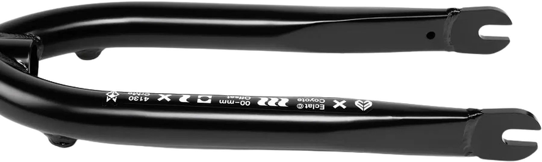 The Éclat Coyote BMX fork is designed to excel in freestyle riding, offering the rider unparalleled control and precision. This fork is made from robust chromoly steel and is designed to withstand intense riding while maintaining a sleek and agile performance. It is designed for 20" wheels and equipped with an integrated headset, ensuring a smooth and responsive ride. It is ideal for tires with a width from 1.75" to 2.0" and easily adapts to different riding styles.