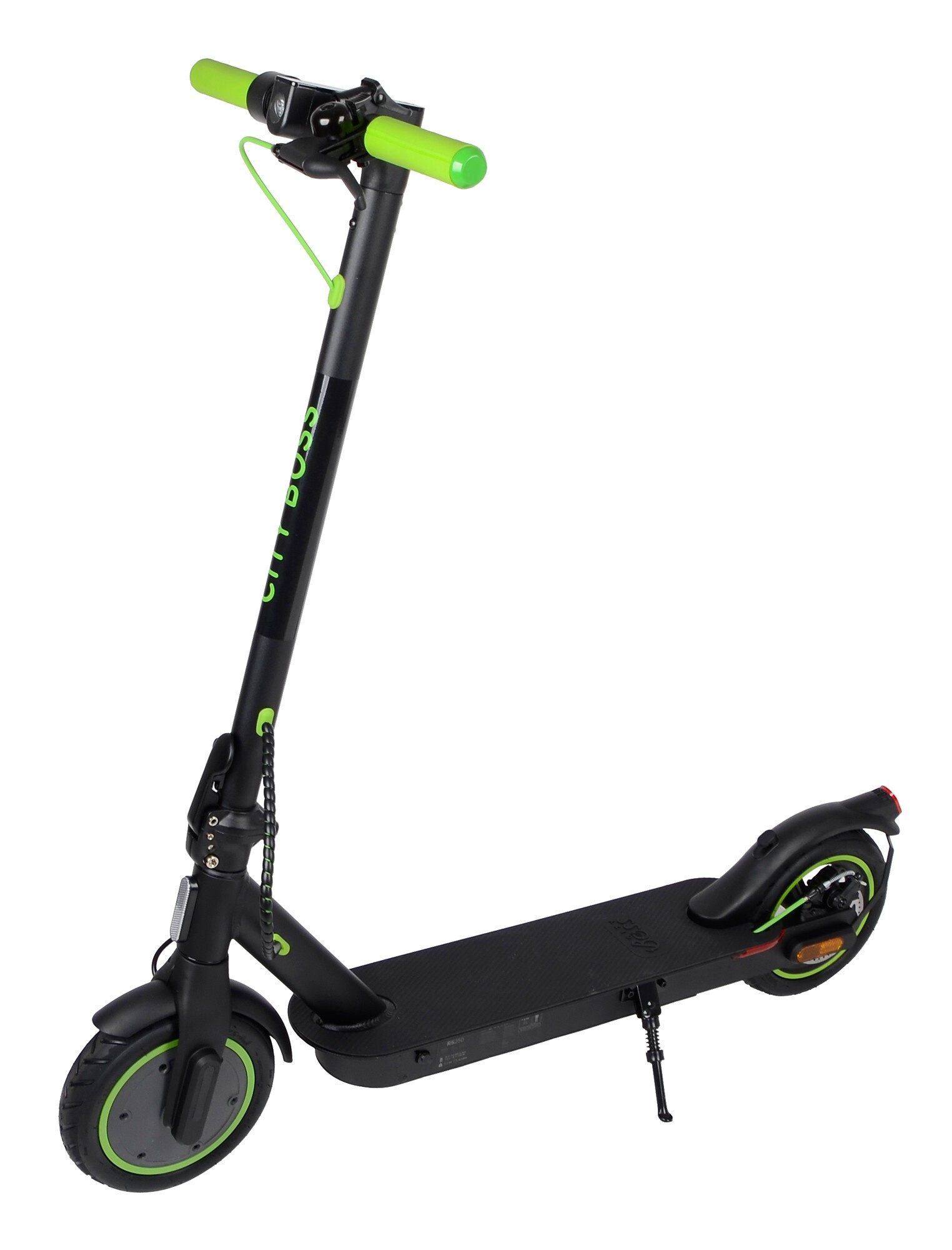 The City Boss RS250 electric scooter will economically transport you to work, school, around the city, or on a trip.Both 8.5" reinforced inflatable tires reduce the possibility of punctures and significantly dampen vibrations when riding on uneven roads.