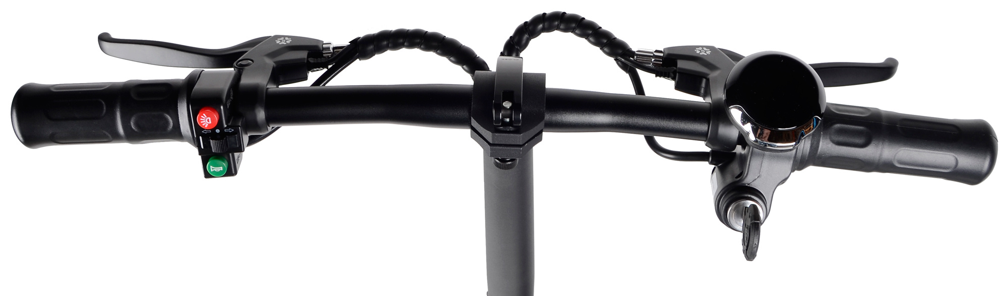Two disc brakes quickly stop the scooter in front of an unexpected obstacle. With wide 57cm handlebars, you have control over your ride even at higher speeds or on rough terrain.