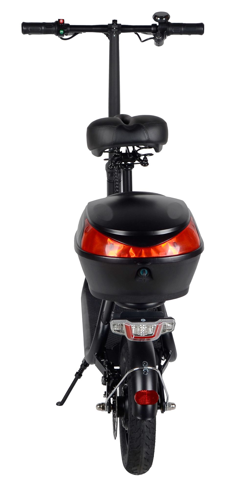 The equipment also includes a stand for when you're not using the scooter.Lockable storage box with a capacity of 15 liters is attached to the carrier and can be used for smaller shopping or transporting smaller items up to a weight of 5 kg. The package includes a charger.