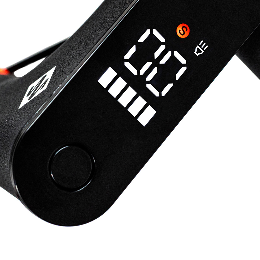 On the integrated LCD display you can monitor basic information about the scooter such as the current speed, battery status, indication of the connection via bluetooth to the mobile phone, driving mode in which the scooter is located and the indication of lighting. With the button at the top of the display you can switch between 2 driving modes to limit the max. speed and turn on the lights.