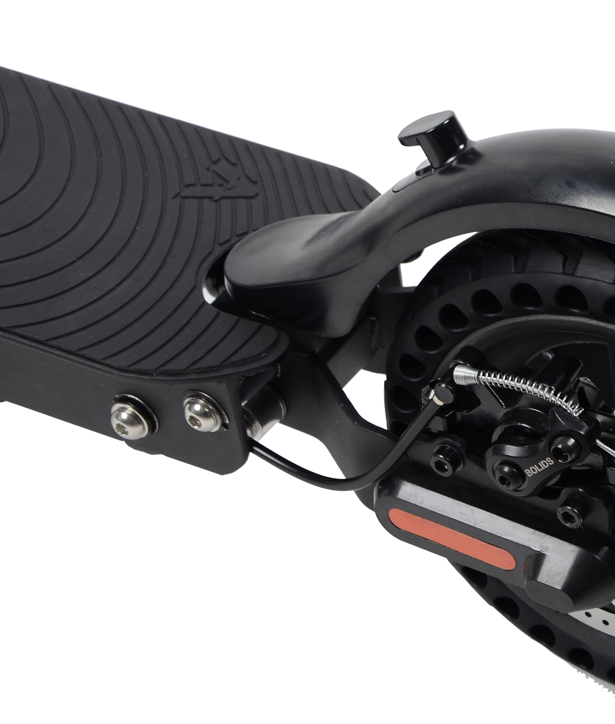 The powerful LED front light sufficiently illuminates the area in front of the scooter even at a speed of 25 km / h. Together with the rear light with integrated reflector, front white and side orange reflectors, you can drive safely even in the dark. You can reliably stop the scooter with the dual brake. During braking with the rear disc brake, the front electronic brake is also automatically activated, which increases braking efficiency and reduces brake pad wear. In addition, the rear brake light flashes when the brake lever is depressed.
