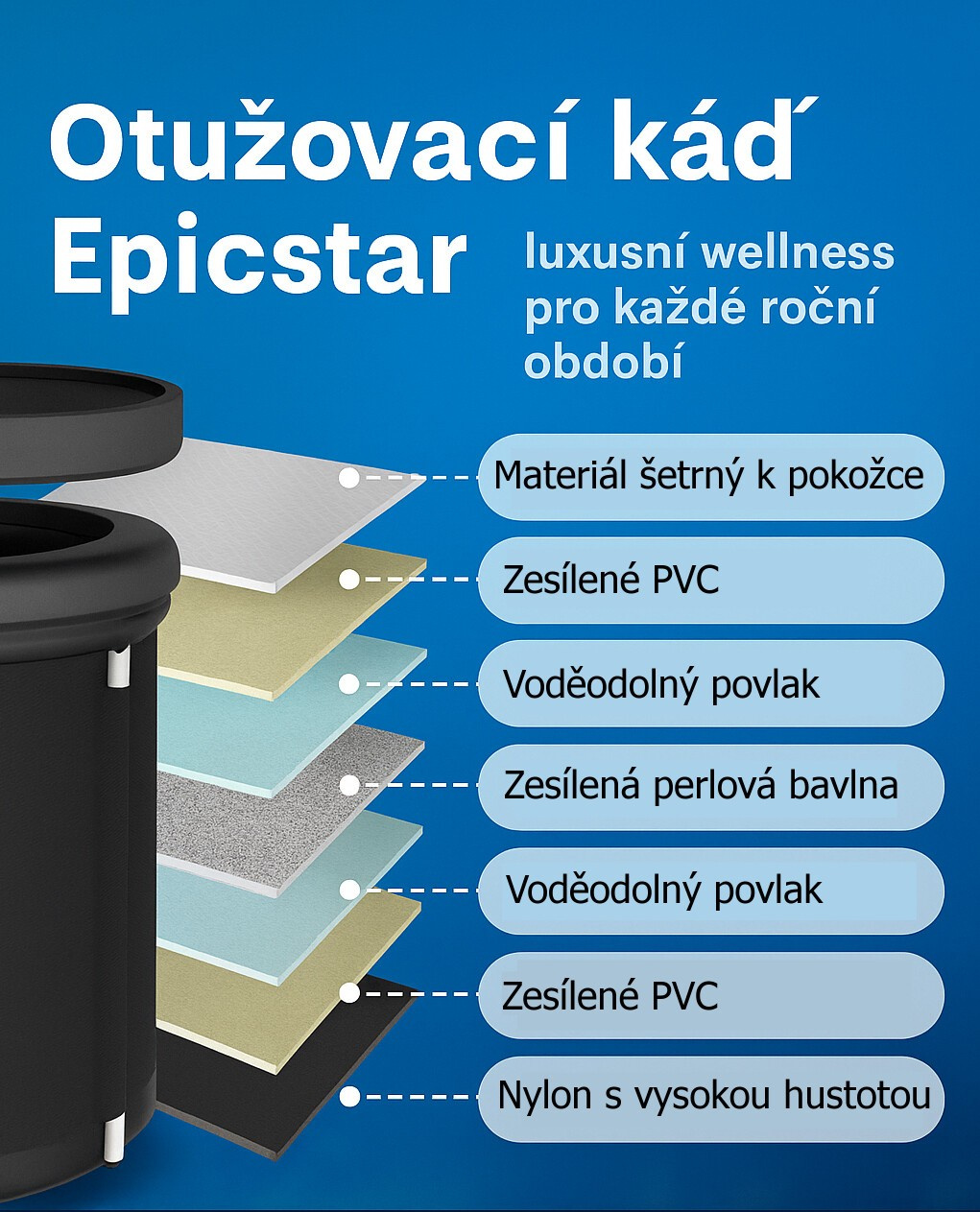 - In winter, water can be left in, the structure is prepared for ice – however, for longer durability, we recommend regular checks of the material's condition.