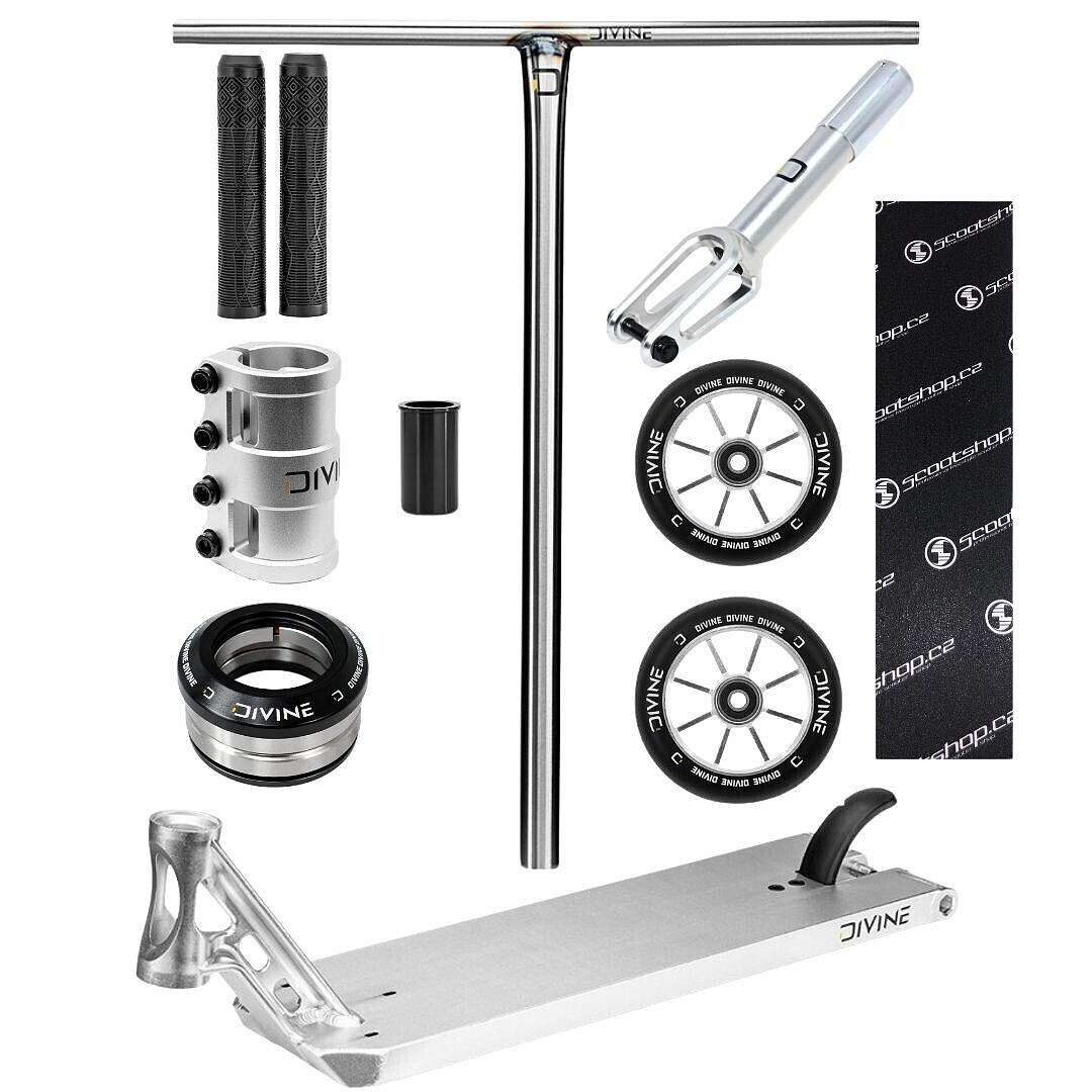 Wheels: 2× Divine Spoked 110 mm – silver – aluminum core, fast and smooth ride