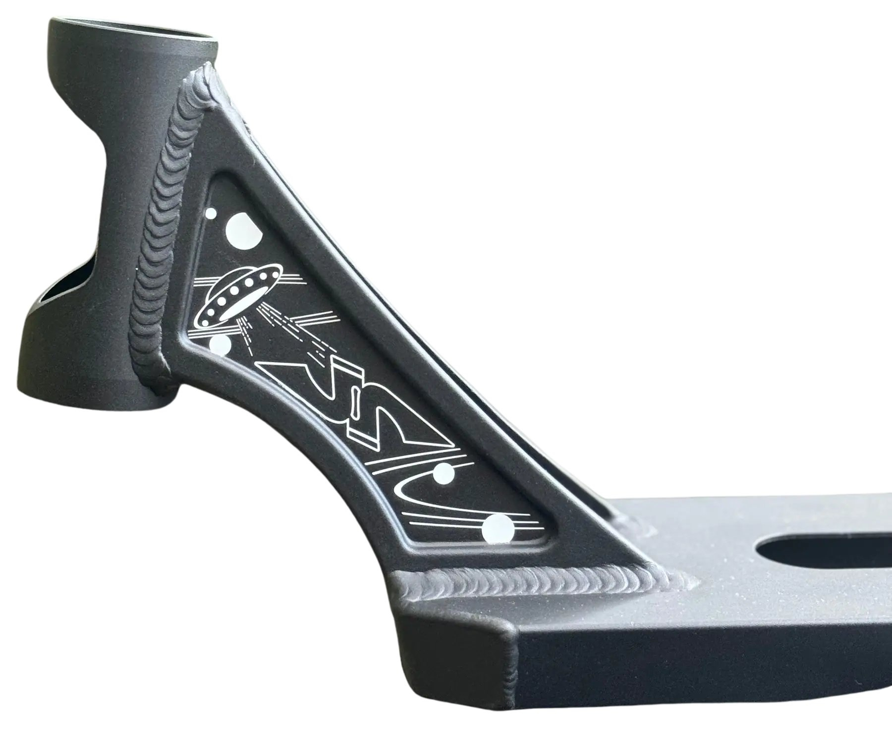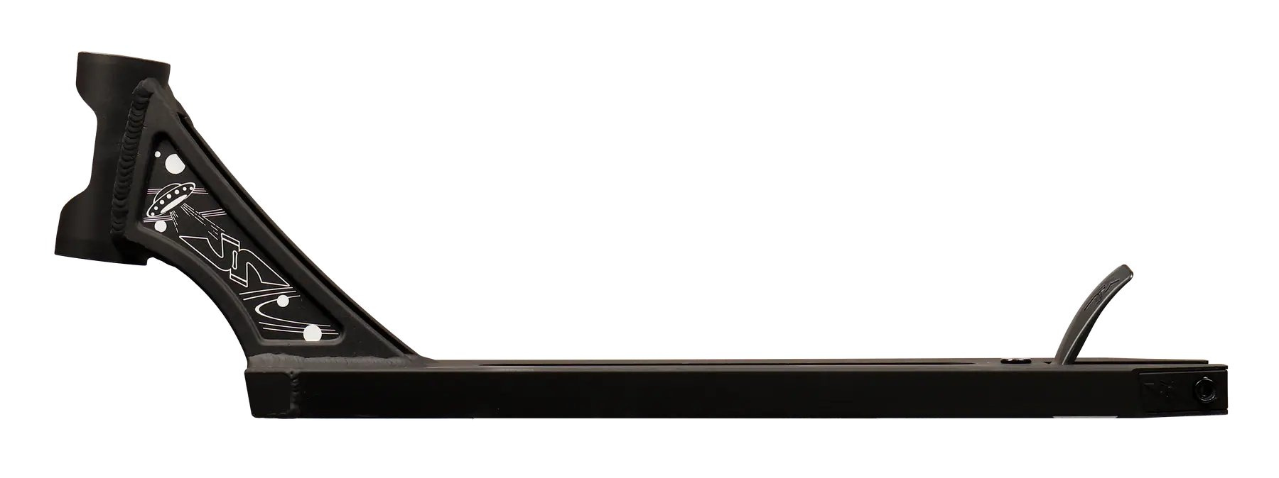 This is a well-performing deck for freestyle scooters. The peg-cut deck is made of light Aluminum. It's a light and agile deck that weighs only 1250g.