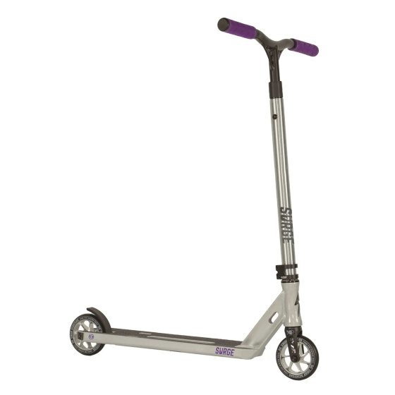 Koloběžka Surge Pro je navržena pro vynikající pohodlí a ovládání na ulici nebo v parku. Je vybavena patentovaným systémem odpružení Crisp, který obsahuje vysoce kvalitní přední cívkový tlumič vyrobený z lehkého a robustního hliníku.