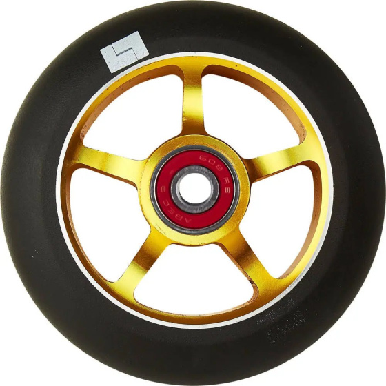 This is a wheel for freestyle scooters. The core is made of 6061 aluminium and it has a spoked design.