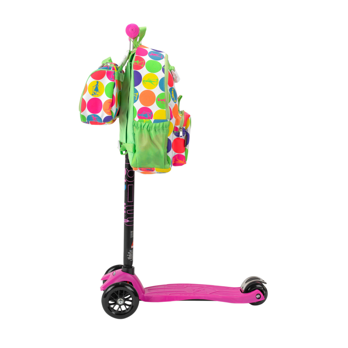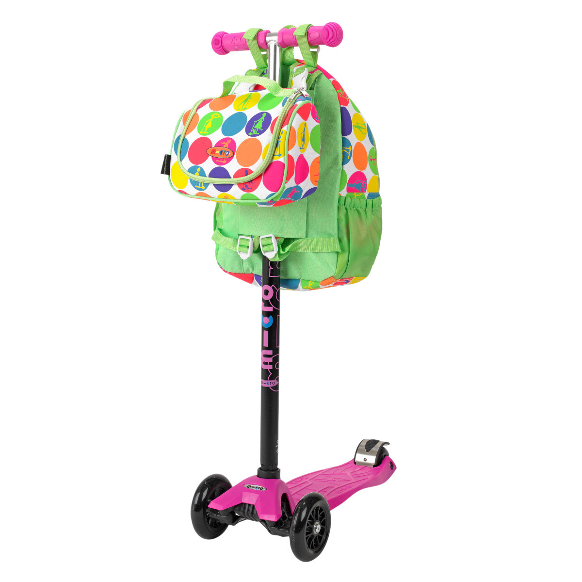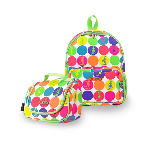 Description Maxi Micro batoh a svačinová taška - neon dots