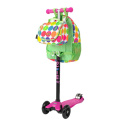 Obě tašky lze snadno spojit pomocí plastových přezek. Samotný batoh nebo batoh společně se svačinovou taškou lze zavěsit na koloběžku pomocí úchytů na suchý zip.