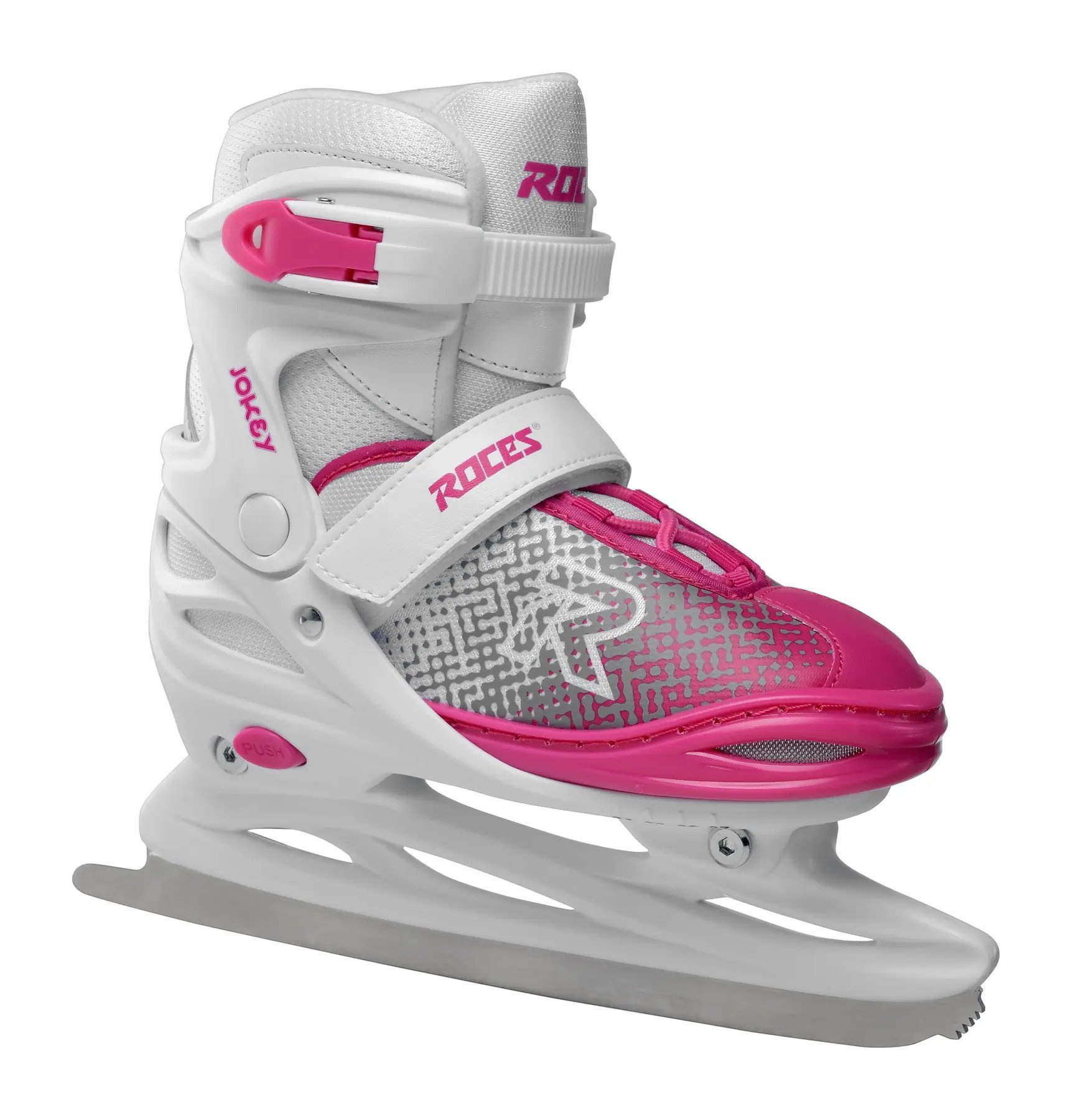 Introducing the Roces Jokey Ice X girls' ice skates, designed for young skaters seeking comfort and reliability on the ice. These ice skates are equipped with an adjustable boot that ensures a perfect fit as your child's foot grows. The semi-soft boot provides support while allowing flexibility for easy maneuvering. The anatomically shaped thermal insulation insert keeps feet warm and comfortable, which is essential for long winter skating. The combination of lacing, Powerstrap, and a micro-adjustable buckle ensures a secure and personalized fit, allowing for easy putting on and taking off. The Roces Jokey Ice X skates are ideal for beginners and intermediate skaters, making them a fantastic choice for your children's ice adventures.
