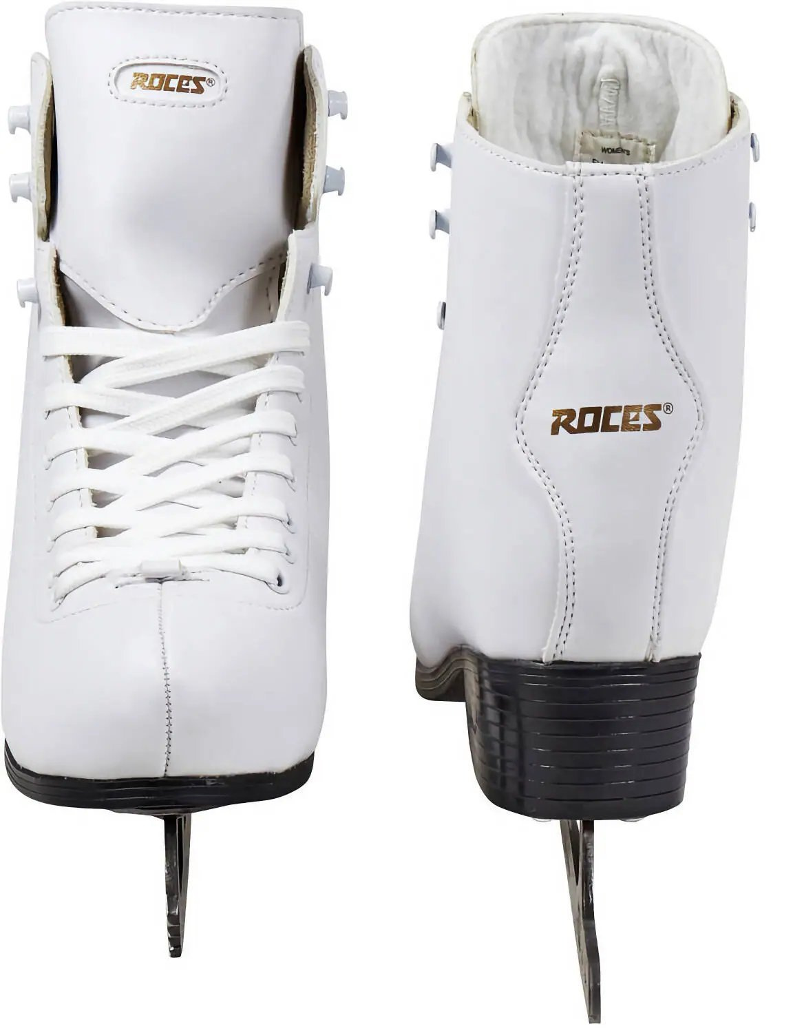 Classic white figure ice skates from Italian Roces with a clean retro look and design.