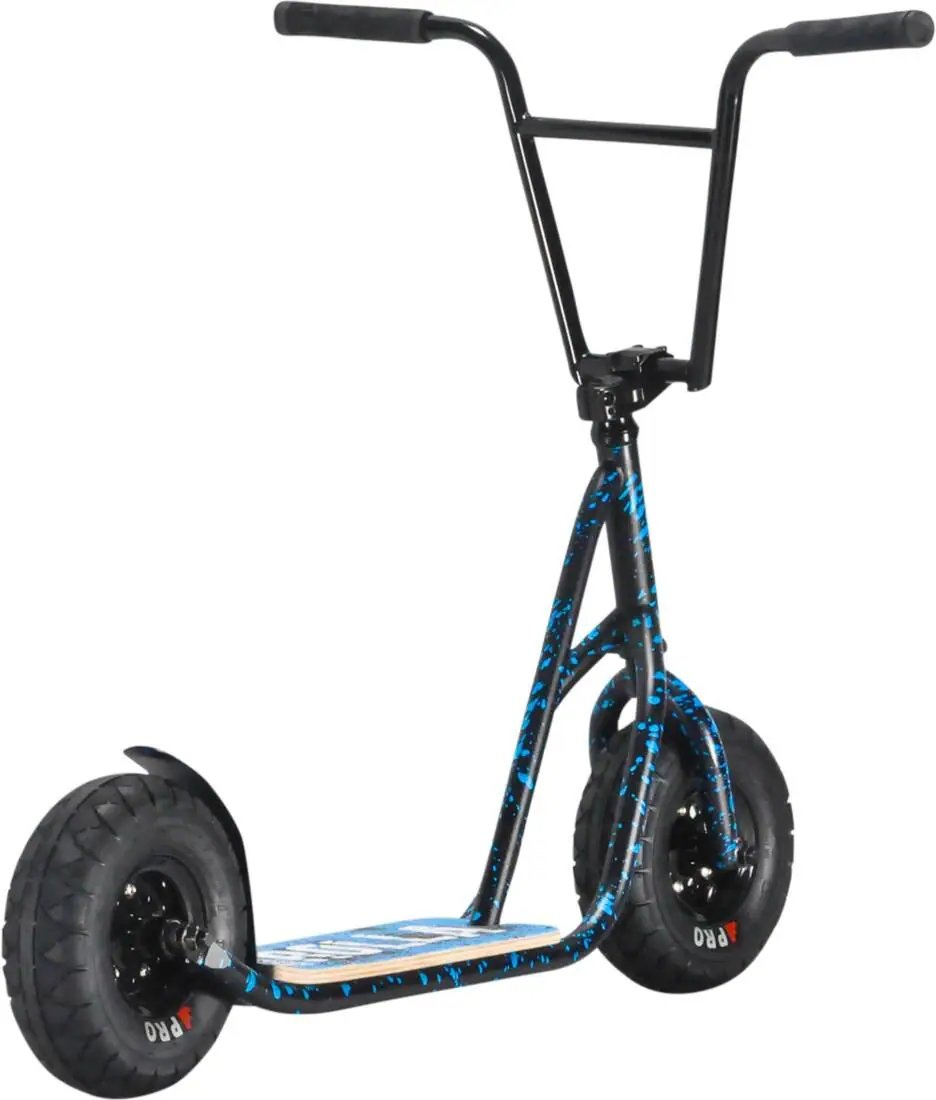 Excellent off-road scooter from a well-known manufacturer of Mini BMX. Suitable for riders who like to jump dirt jumps, ride terrain. With the width of the wheels you can ride anywhere. The reinforced, three-axis steel frame provides greater strength and maneuverability .