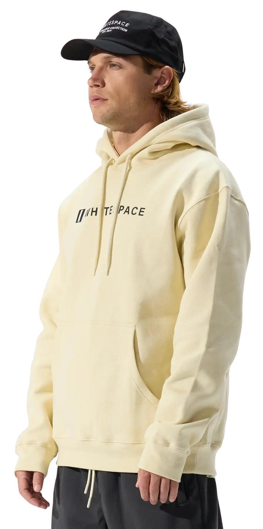 The Whitespace Block snowboard hoodie is a stylish choice for men and unisex. This hoodie, made in Portugal, combines the warmth of premium brushed fleece made from 100% cotton with lasting comfort. Its relaxed fit makes it a versatile addition to any wardrobe, offering easy movement both on and off the slope.